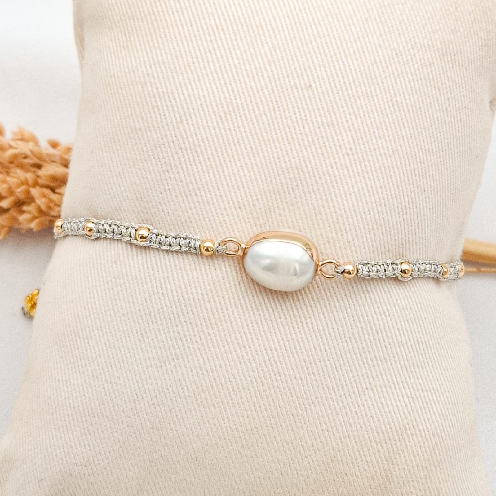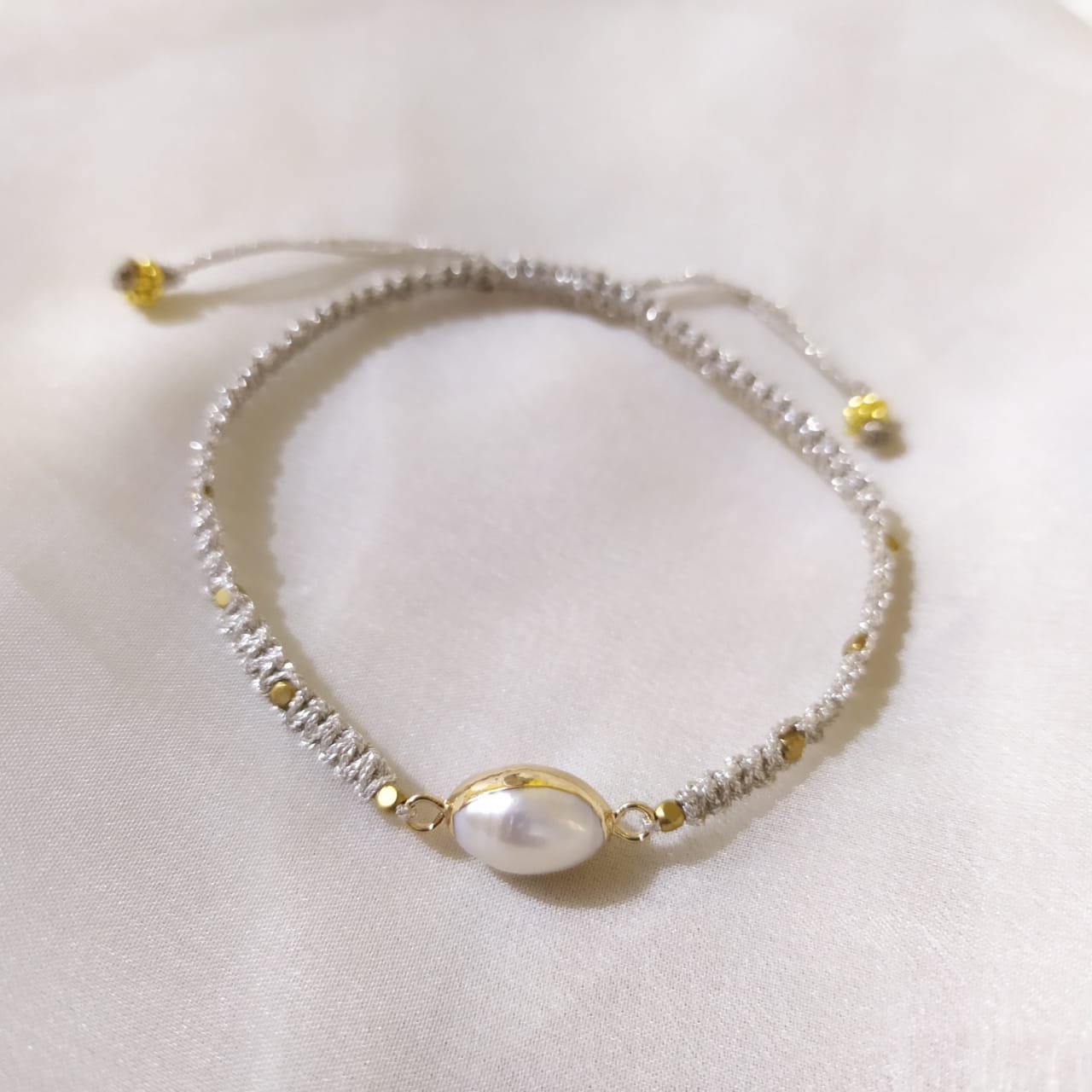 Bracelet Macrame Silver Single Pearl