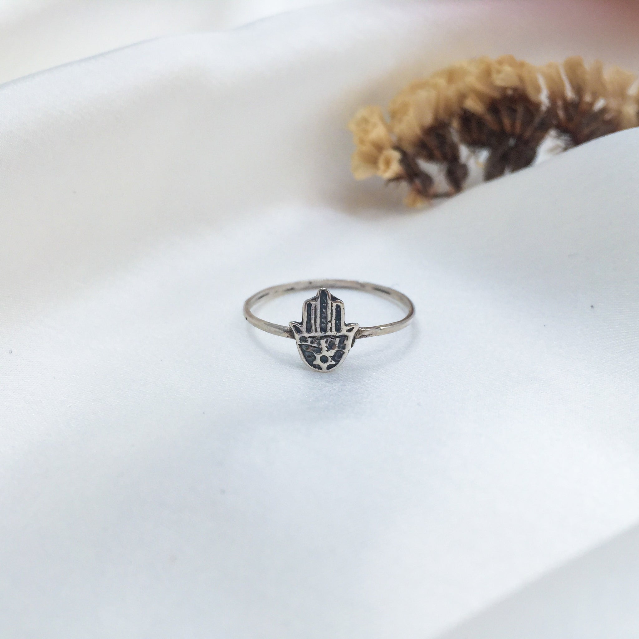 This tiny Hamsa hand ring shell protect the one who wears it. The Hamsa Hand is a universal sign of protection, power, and strength and it is believed to protect against the evil eye and all the negative energies.